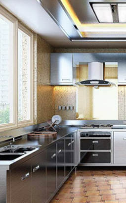 生產(chǎn)不銹鋼整體櫥柜時(shí),要考慮電器、環(huán)境等因素。一起使用的抽油煙機(jī)、微波爐、烤箱,無論顏色、大小、風(fēng)格,都與櫥柜相搭配、相匹配。